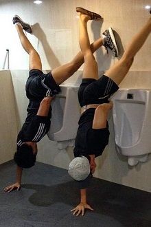 Hai tay chống vào tường,mông đưa về phía sau cho thằng Đức dập mạnh vừa dập nó vừa lòn 1 tay về phía trước,luân phiên nhồi bóp hai
